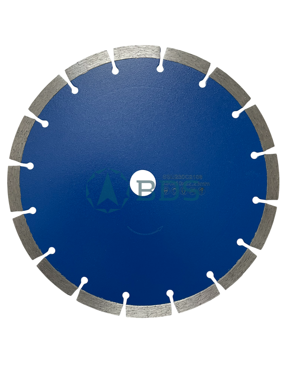 Отрезной круг представлен в диаметре 230 мм с посадочным отверстием 22,23 мм. Высота алмазного сегмента 10 мм.