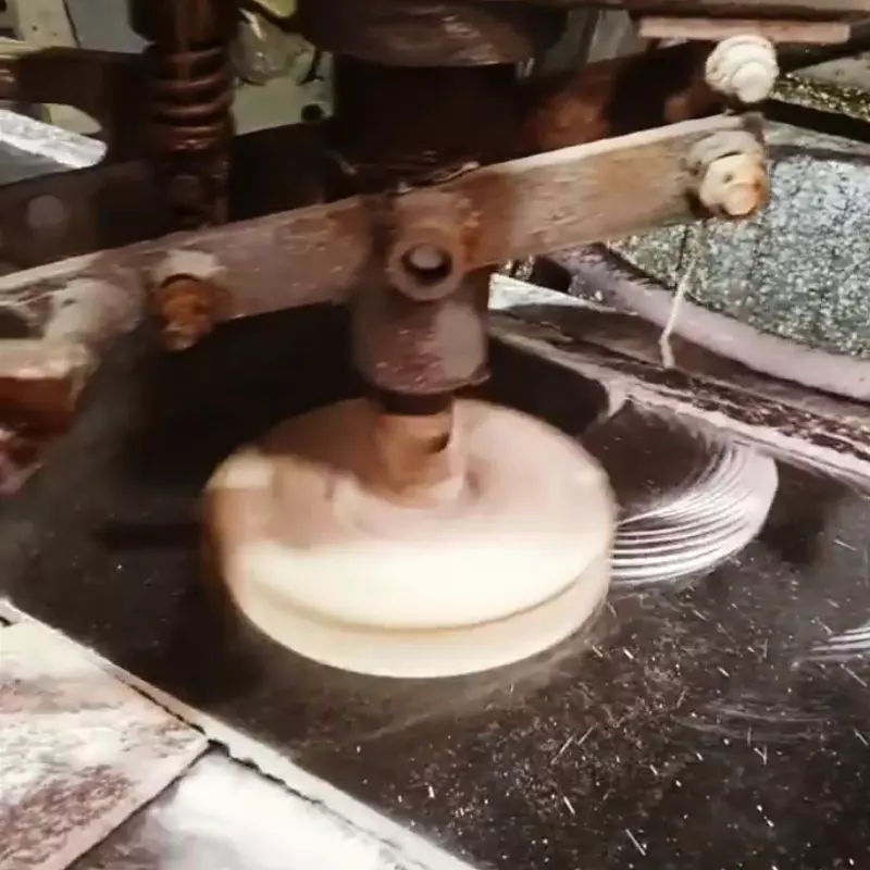 Работать с применением полировального порошка и воды. Крепление – планшайба и прижимная тарелка.